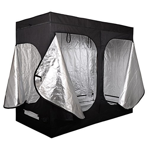 -. Brand : LAZYMOON -. Color : black -. EAN : 6971233274275 -. Feature : 96" x 48"x 78" grow tent, 100% Water-Resistant Removable Mylar Floor Tray for easy cleaning / Large heavy duty Zippers and double Stitching protect the tent from light leaking and ensure durability and long-lasting use / Over 95% reflective Mylar interior returns up to 92-97% of your grow light bulbs¡¯ light back to your plants and herb / Includes an assembly instructions for easy set up / One year warranty plus 30 days satisfaction or return guarantee -. Label : LAZYMOON -. Manufacturer : LAZYMOON -. MPN : 610108 -. PartNumber : 610108 -. ProductGroup : Lawn & Patio -. ProductTypeName : OUTDOOR_LIVING -. Publisher : LAZYMOON -. Size : large -. Studio : LAZYMOON -. Title : 96"x48"x78" Black Indoor Mylar Hydroponic Plant Growing Tents Water-Resistant Garden Seedling Grow Tent