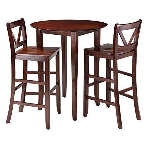 -. Title : Winsome 3-Piece Fiona High Round Table with 2 Bar V-Back Stool, Brown
