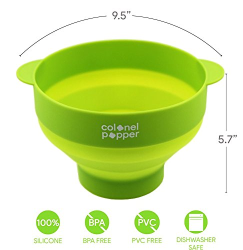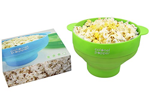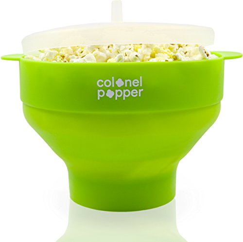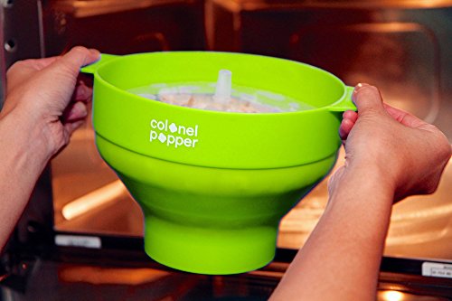 Colonel Popper Microwave Popcorn Popper, Healthy Silicone Popcorn Maker, Collapsible Bowl, Dishwasher Safe, BPA Free (Green)