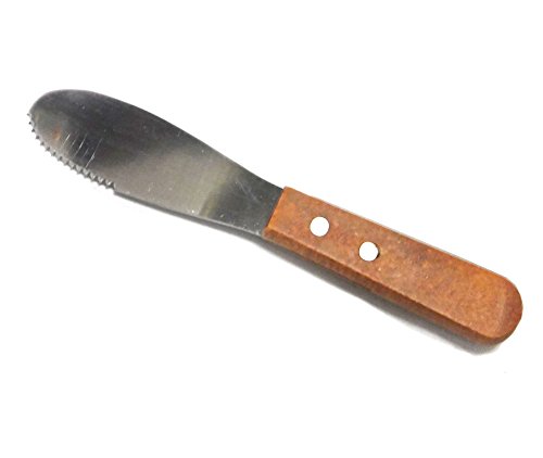 Studio : UPI Publisher : UPI Product Description This multi-purpose tool is just what you need in your kitchen! The small serrations plus wide, round-tip blade allow you to use this butter spreader for a variety of foods and condiments. Spread butter or jam on freshly-baked bread or just cut a sandwich in half. Features a stainless steel blade and smooth, easy to grip, wood handles. 0