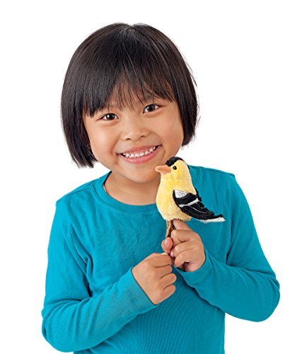 With a Folkmanis finger puppet, you'll always have a friend nearby. Ideal for small hands, this Mini Goldfinch finger puppet from Folkmanis will be a fine-feathered friend to everyone in the family for years to come. Ideal for use in interactive stage and puppet theater, Folkmanis Puppets are also great for teaching, daycare, school, pretend play, games and parties, or to pair with a book for storytelling. Easy to feed and care for, just add lots of love and snuggly fun. This puppet measures 5 x 3 x 4 inches (LxWxH). Folkmanis has been encouraging young imaginations to blossom since 1976 with its innovative and engaging specialty puppets, promoting creativity and discovery while winning nearly every industry, child development and kid-tested award. Folkmanis has grown to become the premier manufacturer of plush puppets worldwide, offering over 200 of the most heartwarming and realistically designed creatures--both exotic and familiar--on the market today. (Birthday: July, 2015).Feature