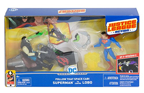 -. Binding : Toy -. Brand : DC Comics -. EAN : 0887961606614 -. Feature : 45" scale Superman, oversized Lobo, and mini Mr Mind figures / Space Chopper comes with hidden kryptonite cannons / Superman's armor reconfigures from Capture Claw to Shield / Lobo wields his signature kryptonite axe weapon / Weapons are interchangeable with other Justice League Action figures' and vehicles for endless battle play Other figures and vehicles sold separately, subject to availability -. Label : Mattel -. Manufacturer : Mattel -. Model : FPD44 -. MPN : FPD44 -. NumberOfItems : 1 -. PackageQuantity : 1 -. PartNumber : FPD44 -. ProductGroup : Toy -. ProductTypeName : TOYS_AND_GAMES -. Publisher : Mattel -. ReleaseDate : 2017-11-01 -. Studio : Mattel -. Title : DC Justice League Action Superman Vs. Lobo Figures -. UPC : 887961606614 -. Warranty : 1 year warranty against manufacturer defects