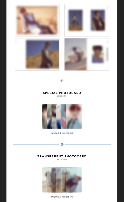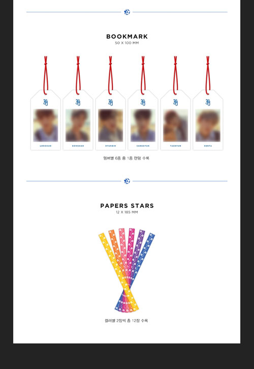 ■ 構 成:1CD(全6種の中1種ランダム)+フォトブック104P+スペシャルフォトカード1種(全6種の中1種ランダム)+透明フォトカード1種(全6種の中1種ランダム)+ブックマーク1種(全6種の中1種ランダム)+ペーパースター12枚