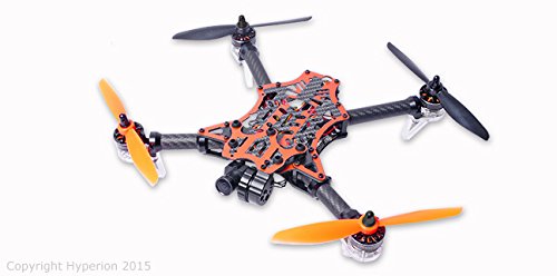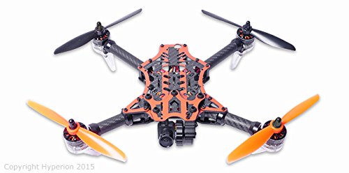 -. Feature : Specs: Frame Size: 280mm DeadCat style Motors: 4x 2204-size, 2300Kv High-Ouput Brushless ESC: 4x Hyperion Custom Compact BL-Heli 20A / Fully Assembled: No building or firmware loading necessary! / On-Screen Display (OSD): Program or set up your Vengeance on-the-fly, no computer needed / In-Flight-Adjustable Single-Axis Camera Gimbal, Self-leveling during flight / Needed for Completion: Battery: 3S/4S, 1200~1800mah (Hyperion G6 HV 60Cmax or 80Cmax recommended) Props: 4S= 5x3, 3S=5x3, 5x4, or 6x3 depending on application (5x3 included with Racer) Transmitter and Receiver FPV Monitor or Goggles