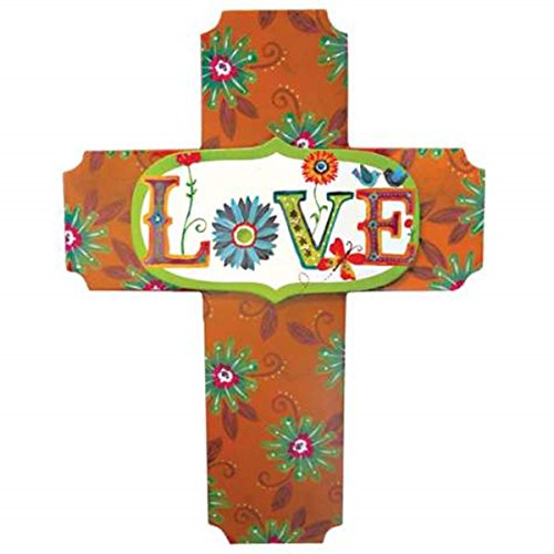 WL SS-WL-22317 "Love" Cross-Shaped Hanging Flowered Wall Plaque Display, 10.75"