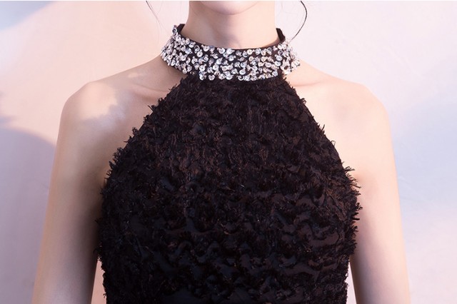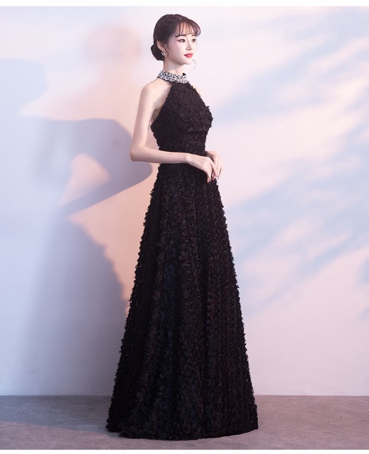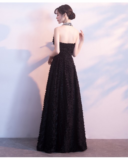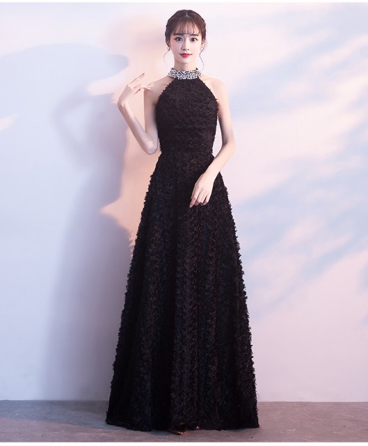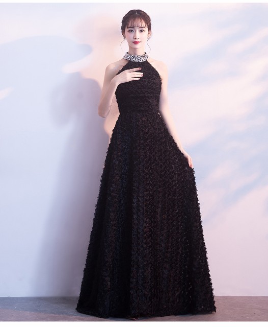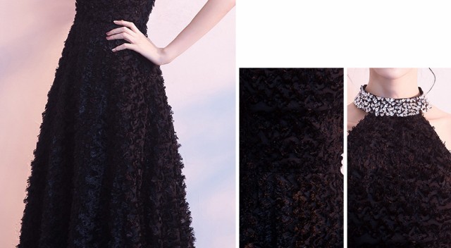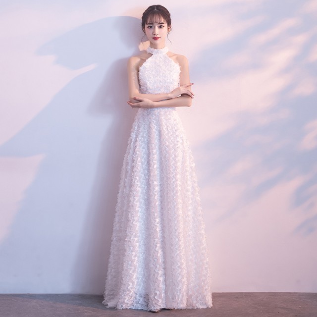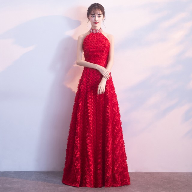 ゴージャスで高級感のあるロング丈のパーティードレス。