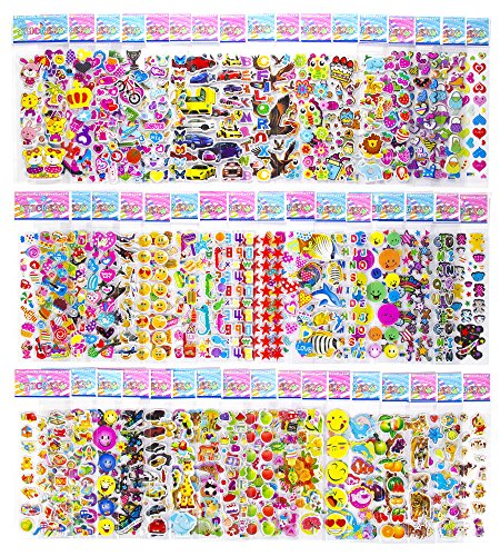 Pack of 50 Different Sheets MCY Toddlers and Kids Puffy Stickers for Children (Girls and Boys),1100+ Puffy Stickers Mega Variety Pack
