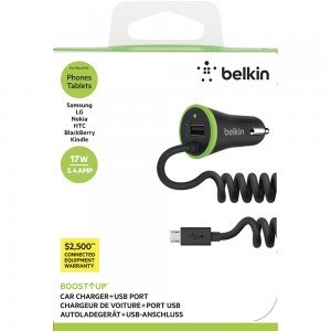-. Title : Belkin - Car Charger Dual 3.4a with Attached Micro Cable F8m890bt04-blkp