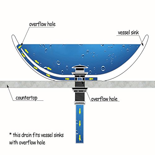 Comllen Modern Lavatory Faucet Vessel Assembly Pop Up Stainless Steel Bathroom Sink Stopper Drain with Overflow, Polished Chrome