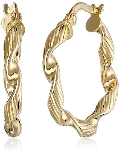 -. Title : 14k Yellow Gold Italian Twisted Hoop Earrings