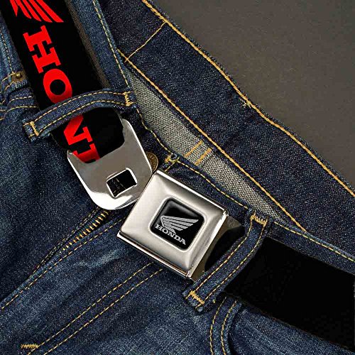 Studio : Buckle-Down - Parent Vendor Code Publisher : Buckle-Down - Parent Vendor Code Binding : Apparel Product Description Buckle-Down's iconic Seatbelt Belt is a cool, smart, and exciting blend of fashion and function. Always a conversation starter, our Seatbelt Belt adjusts to perfectly fit your waist while showcasing your unique sense of style. Our Seatbelt Belts are made with authentic automotive style seatbelt buckles making them easy to open and close at the push of a button. Our Seatbelt belts are 1.5 inch wide and are infinitely adjustable for pants sizes 32 to 52. This product is Handcrafted in USA by Buckle-Down Inc. and Officially Licensed by Honda Motorsports. 0