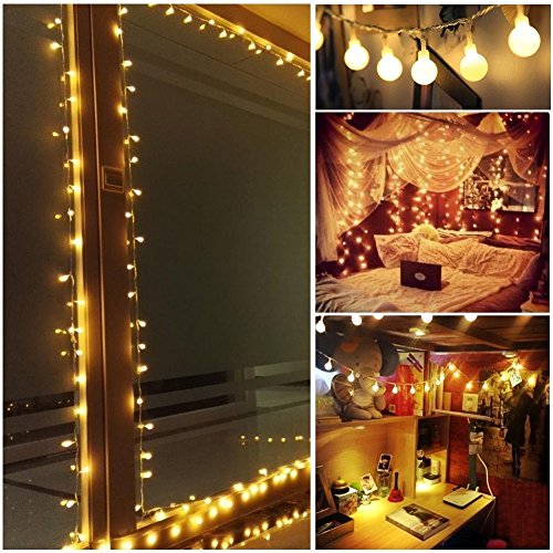 39 ft 100 Warm White LED Globe Fairy Lights which give a cosy glow