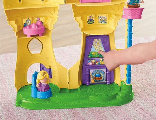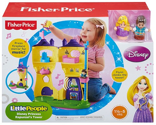 -. Binding : Toy -. Brand : Fisher-P.R.Ice -. EAN : 0746775319922 -. Feature : Rotate the crank to carry figures up and down the tower in the basket elevator / Press the mirror above the fireplace to play a charming melody / Store everything inside and close up the tower until the next adventure! / Includes tower play set, bed, table, chair, flag and Little People® Rapunzel and Flynn figures / Requires 2 AAA batteries -. IsAdultProduct : 0 -. Label : Fisher P.R.Ice -. Manufacturer : Fisher P.R.Ice -. Model : BGC74 -. MPN : BGC74 -. PackageQuantity : 1 -. PartNumber : BGC74 -. ProductGroup : Toy -. ProductTypeName : TOYS_AND_GAMES -. Publisher : Fisher P.R.Ice -. Studio : Fisher P.R.Ice -. Title : Fisher-P.R.Ice Little People Disney P.R.Incess Rapunzel's Flynn Figure Musical Tower -. UPC : 746775319922