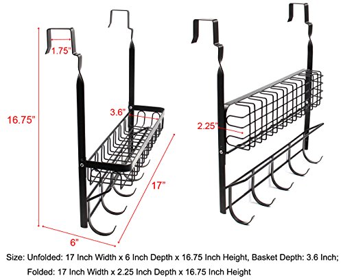 ESYLIFE Over the Door Hooks Organizer with Basket Hanging Storage Rack with Towel Bar, Black