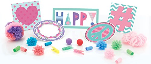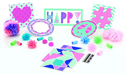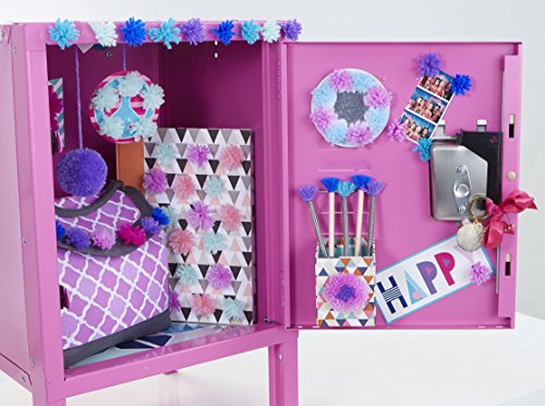 Turn your room or locker from plain to wow with Pom Pom Wow! Decorate your room or locker with colorful pom poms. The Locker and Décor Set includes 70 pom poms in 7 colors, 80 adhesive dots, 1 geometric mirror, 4 decorative cards, 3 clips with yarn, 1 ball, 4 carpet tiles, and 9 magnets.