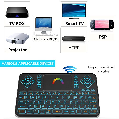Colorful Backlit Features: Wonderful mini wireless keyboard with colorful backlit, including red, orange, yellow, green, blue, indigo, violets switch randomly.Backlit function can be used in poor lighting environments, more convenient at night.