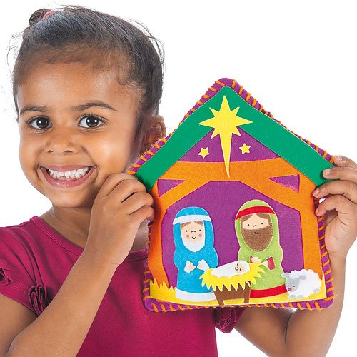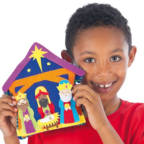 - Feature : Introduce children to sewing, and the Nativity story, with these easy to sew cushions. / Each kit includes pre-cut felt shapes, self-adhesive felt pieces, plastic needle, yarn, / stuffing and instructions. Size approx. 9.8in. / 2 assorted. Age 5+. / Delivered within 9 working days