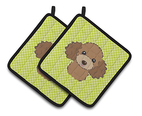 Caroline's Treasures Checkerboard Lime green Chocolate Brown Poodle Pair of Pot Holders BB1318PTHD, 7.5HX7.5W, Multicolor