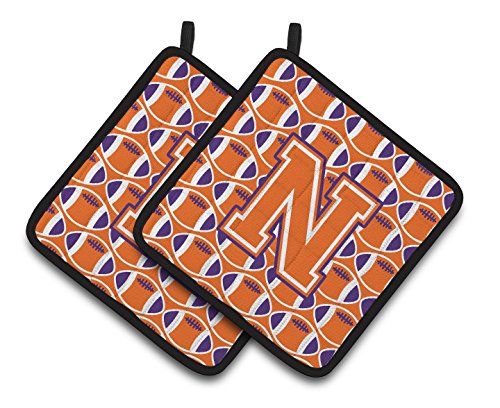 Caroline's Treasures Letter N Football Orange, White & Regalia Pair of Pot Holders CJ1072-NPTHD, 7.5HX7.5W, Multicolor