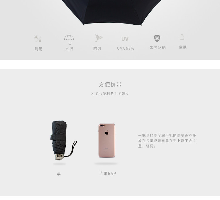 伞面涂层: 黑胶