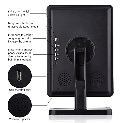 ⇒ BUILT-IN BLUETOOTH SPEAKER : ENJOY YOUR FAVORITE MUSIC WHILE STARING IN THE DISTORTION-FREE MIRROR. YOU CAN EVEN ANSWER YOUR PHONE CALLS THROUGH THE DEVICE.