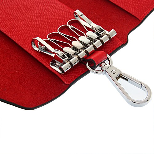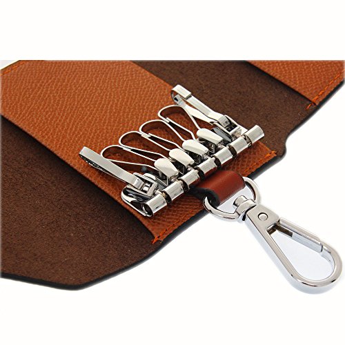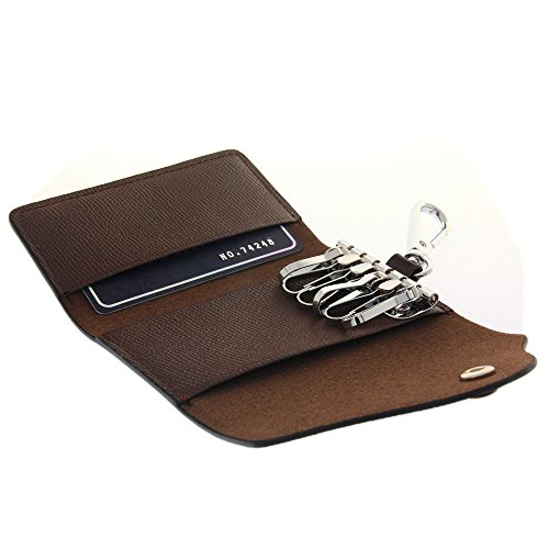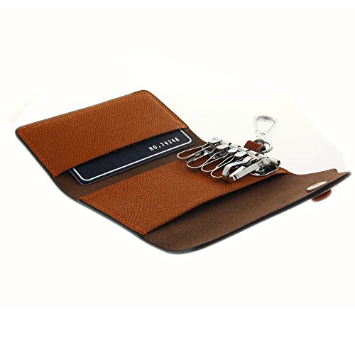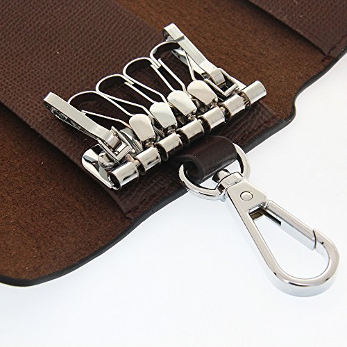 | (TimeMax)/Accessories/Wallets, Money Key Organizers/DIRECT FROM USA/Key Case Unisex Cowhide Leather Wallet with 6 Hooks Keychain Keyring Snap Button Closure Key Ho... |