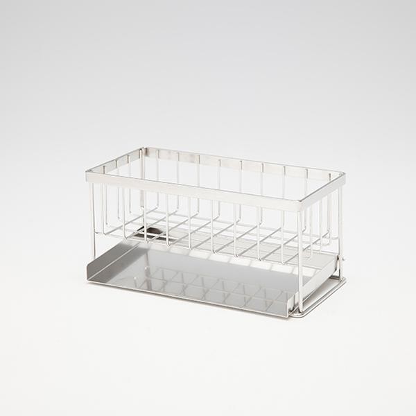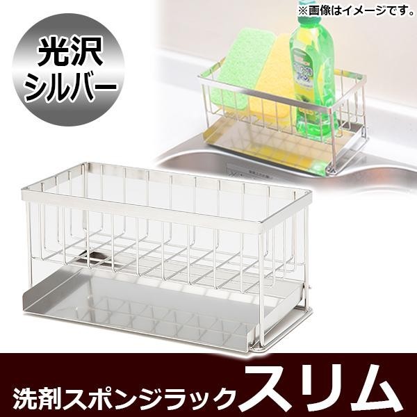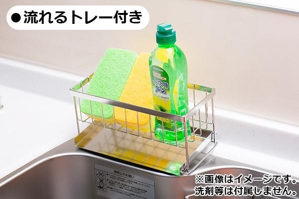 きれいに使えてシンプルなデザインが特徴のスポンジラックです。清潔でさびにくいステンレス製で、たまった水がシンクに流れるように傾けて設置できる優れものです。シンク外に置くタイプで、シンク内が広く使えます。出し入れしやすく、ポンプタイプの洗剤等もラックに置いたまま使えます。 |