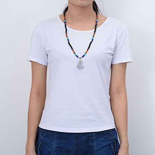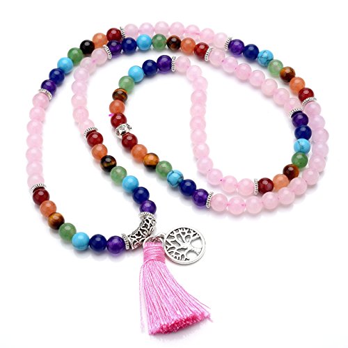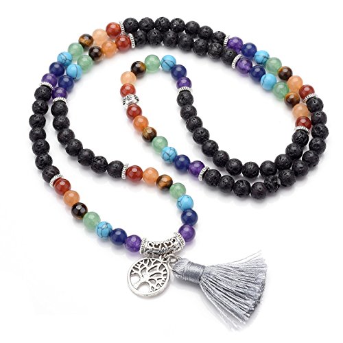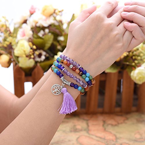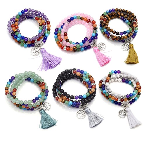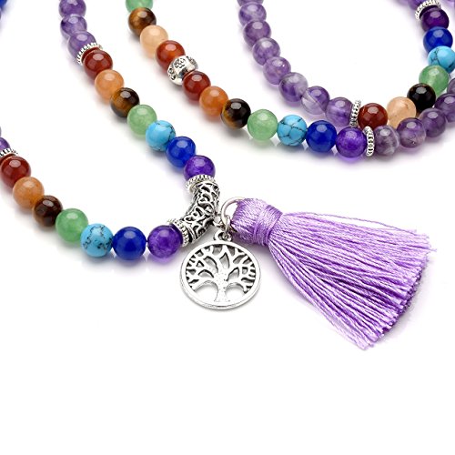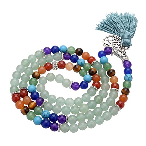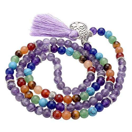 7 Chakra Wrap Around 108 Tibetan Mala Prayer Beads Rosary Jewelry - With Durable Elastic Cord, it can be used as a necklace or a wrap bracelet