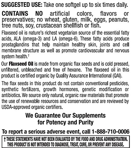 PROTECT YOUR HEART & BRAIN — Cold pressed flaxseed oil is the richest natural source of omega-3 and omega-6 available from a plant source. Each of our organic and pure flaxseed oil softgels contains over 580 mg of omega-3 fatty acids per dose in a 1,000mg softgel.