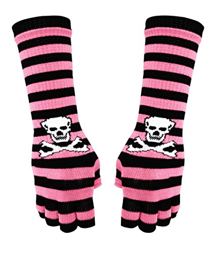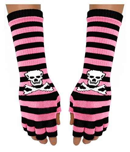 Binding : Apparel Product Description Rose Striped Arm Sleeves with Skull Super soft fingerless sleeves with trendy pattern Our supple arm warmers are worn pleasantly. The soft and yet stretchable materials keep the arms warm. Material: 80% Acrylic, 20% Elasthan Size: One Size (stretchy) Packed in pairs Care instructions Wash at or below 40°C, Do not dry clean, Do not bleach, Do not tumble dry, Do not iron Note: Based on various color profiles on computer monitors differences in color and pattern may occur. 0