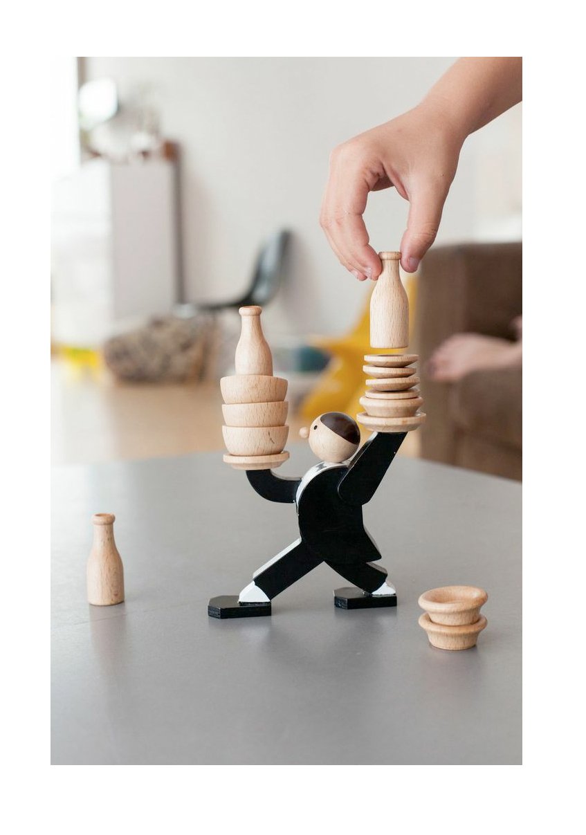 Stacking game playing with tableware on it so that the waiter does not turn the tray over.