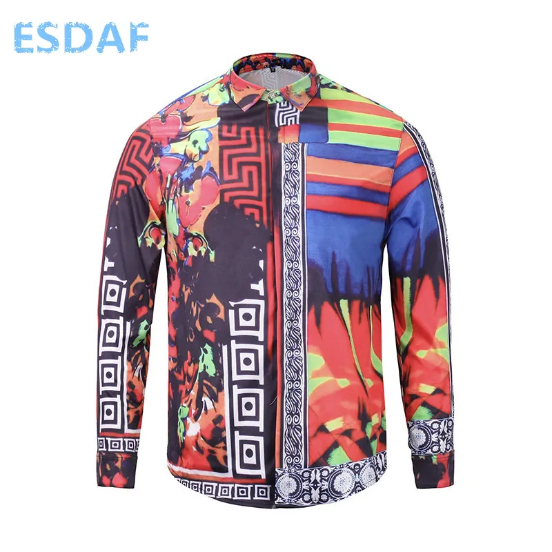 7:2017 Retro Floral Printed Man Casual Shirts Fashion Classic Men