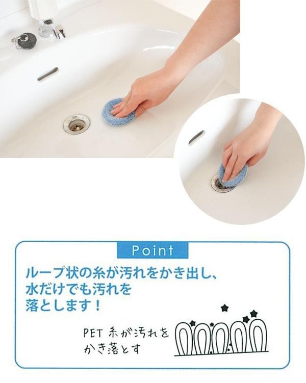 ループ状のPET糸が汚れをかき出し、水だけでも汚れを落とします!! 製造国:中国 素材・材質:PET 商品サイズ:W7×D1×H7cm セット内容:5個セット ※サプライヤー直送品 ご注文後3~4営業日後の出荷となります【商品名】Nicott 洗面台洗いタワシ BLブルー L07502 5個セット