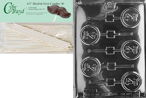 Cybrtrayd 45St50-L026 I'm 4 Lolly Letters and Numbers Chocolate Candy Mold with 50-Pack 4.5-Inch Lollipop Sticks