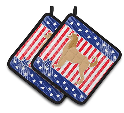 Caroline's Treasures USA Patriotic Afghan Hound Pair of Pot Holders BB3306PTHD, 7.5HX7.5W, Multicolor