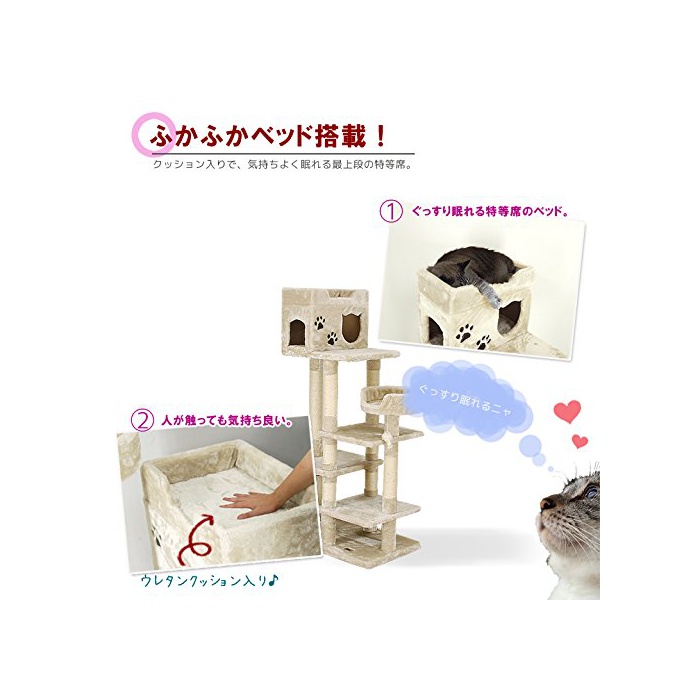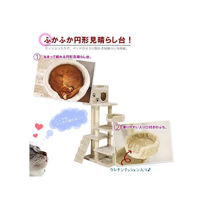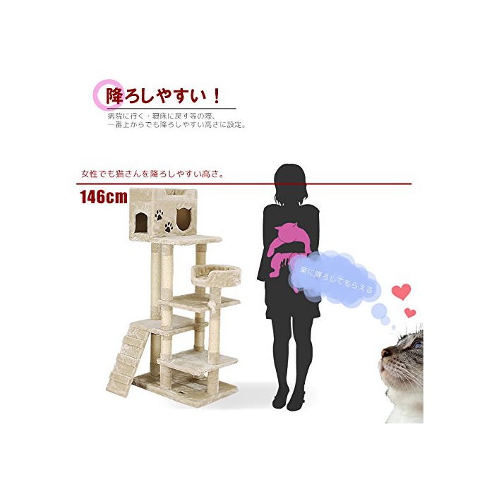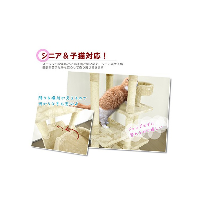 CAT WINGS 캣 윙《스》 시니어 운동 어려운묘 씨용 저 단차로 새끼 고양이도 대응 CW-T0808 146cm 고양이 타워 캣 타워 보류형 자립 【신경이 쓰이는 냄새(향기)가 없으면 호평입니다】도 #도 #