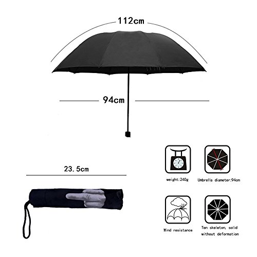 -. Feature : ☛ High quality umbrella cloth: high density umbrella hit cloth, lotus leaf effect can effectively block the rain. Allows the wind to pass through the vents, preventing it from flipping over and breaking in strong gusts of wind. / ☛ Stainless steel umbrella:The umbrella frame are made of paint steel frame,10 umbrella frame light and durable, difficult to deformation and rust.The ergonomic, slip-proof rubberized handle, handles have also been balanced to allow for the most comfortable use possible, Easy one-handed operation. / ☛ Personalized printing:this product is full of creative, unique gestures can highlight the young personality whether it is in the rain or sunny day. / ☛ Sunscreen windscreen: The umbrella cloth with unique design,it can block the sun and wind when you go out on a sunny day, poly-ponge is a THICKER high density fabris with stronger water repellency technology and QUICK drying. / ☛ Three fold umbrella: This umbrella length 23.5cm, umbrella face diameter 94cm,big blocking area, easy to carry, you could keep it in your schoolbag, briefcase, backpack, or luggage while you are traveling, Business trip, go out.