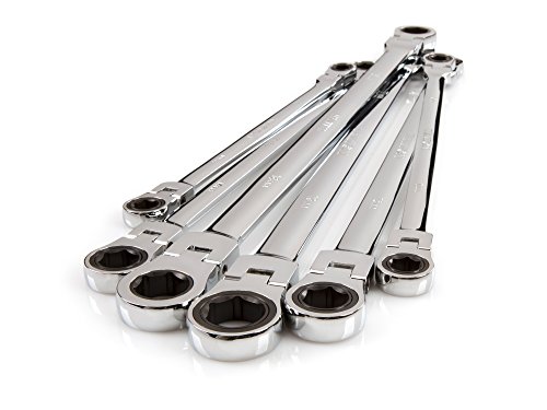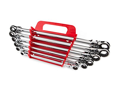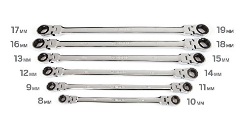 TEKTON WRN77164 Extra Long Flex-Head Ratcheting Box End Wrench Set with Store and Go Keeper, Metric, 8 mm - 19 mm, 6-Piece