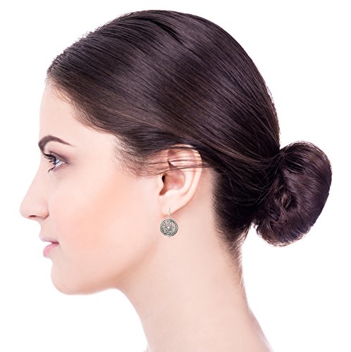 The round earrings measure about 1.4 cm or 1/2" in in diameter. These earrings have secure backs wire and hook closure