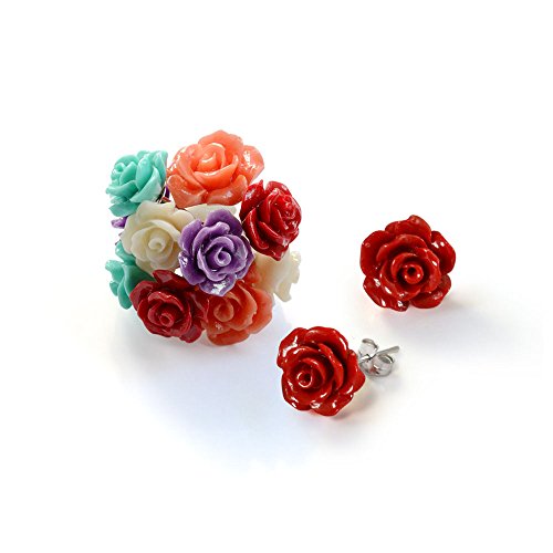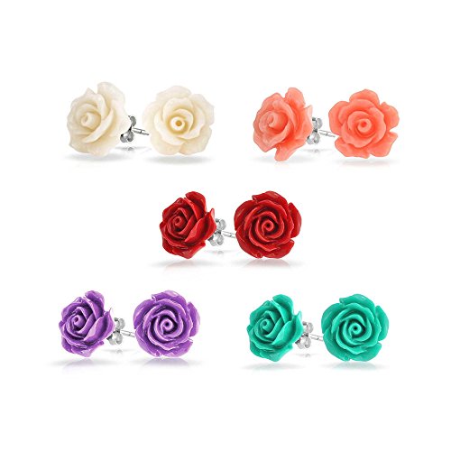 Say it with flowers. This fabulous silver plated stud earring set features 5 pairs of brightly colored resin rose studs. Perfect gifts for mom, these rose flower earrings are sure to be her favorite mothers day gift. With their gorgeous hues, these silver plated brass stud earrings are a great compliment to any spring outfit.