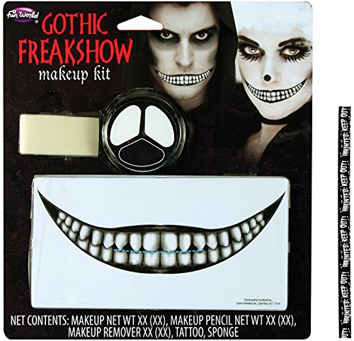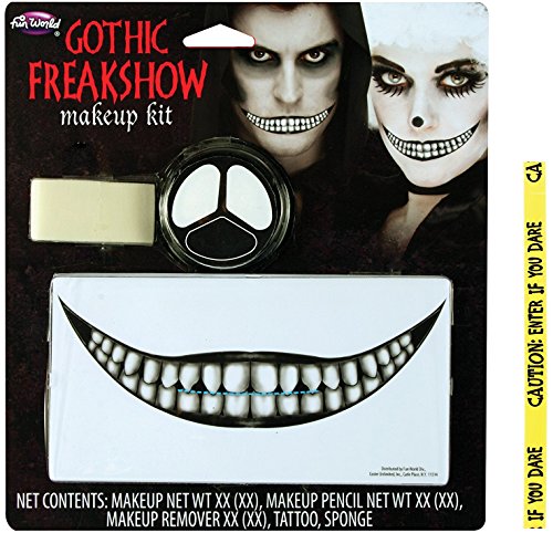-. Feature : Freakshow Faces - Includes FREE Caution Tape Chosen at Random / Made with ingredients considered safe for the skin / Be aware that hyper sensitive skin can have reactions, so always test on your wrist before fully applying / Scare your friends, neighbors, or strangers passing by when they see you in this! / Great for unique Halloween costumes, theater performances, or anytime you want to be scarred and/or disfigured