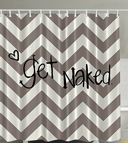 Funny Quote Sexy Symbol Of Love Geometric Get Naked Zig Zag Chevron With Heart Design For Home Accessories Bathroom Fabric Shower Curtain, Gray Cream by Vandarllin