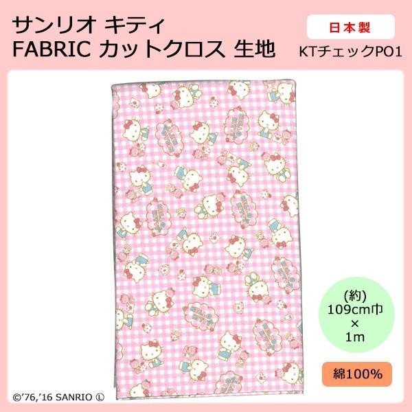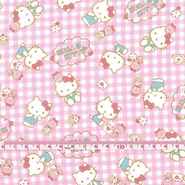 入園・入学用品や雑貨小物、親子お揃いのエプロンやインテリアにもおすすめです。 製造国:日本 素材・材質:綿100% 商品サイズ:(約)巾1.09×1m 重量:(約)220g ※サプライヤー直送品 ご注文後、当日~1営業日後の出荷となります【商品名】サンリオ キティ FABRIC カットクロス 生地 KTチェックPO1 638702 109cm巾×1m