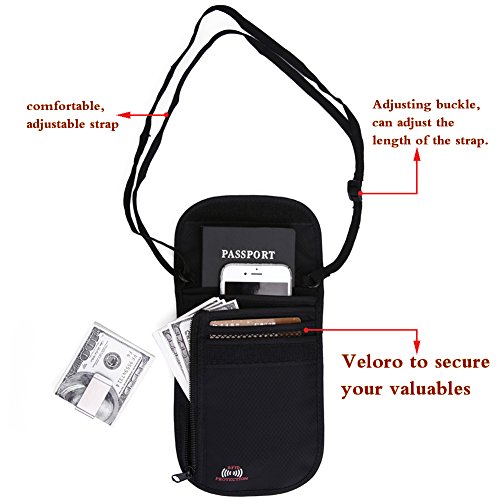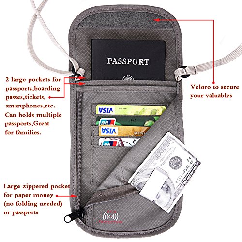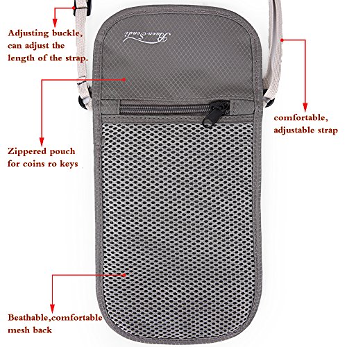 -. Feature : ●The passport holder is made of high quality waterproof nylon material. Material feel comfortable, wear-resistant, strong and durable. Waterproof nylon material keeps your cash, receipts, and important documents organized and secure. / ●RFID Blocking Technology,Prevent information theft. RFID blocking material, prevent being scanned by the bad guys to keep your personal ID, credit cards, passports, money and other vaulables Safety. / ●Powerful function: 6 pockets, can hold a lot of important things. Can hold multiple passports. Two Zippered pockets: one for holding money w/o folding it and Equipped with 4 bank card slots to Convenient storage bank card, the other is perfect for coins and keys. / ●Lightweight, comfortable to wear: The light material makes it easy to carry, and the well-designed strap and breathable mesh back will be comfortable on top of clothes or against your skin. Prevent pickpocketing: The passport holder allows you to keep your cash, credit cards, passports, & other important items right on your body, making it almost impossible for pickpockets to go unnoticed. / ●Buy a passport wallet, you can get a free gift: a stainless steel money clip. It keep your money stay organized.