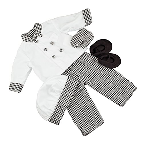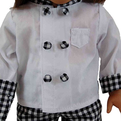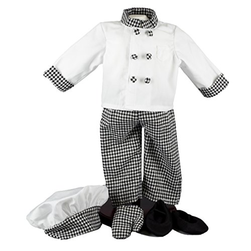 - Fantastically detailed 18 inch doll clothes chefs outfit. Complete doll outfit includes Chef coat, doll hat and doll shoes and even an doll sized oven mitt.
