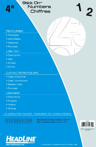 Headline Sign 32432 Stick-On Vinyl Numbers, White, 4-Inch