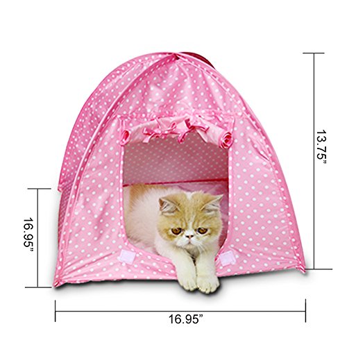 Feature: Easy to clean. Removable. It is quick and easy to assemble and take down. Comfortable and Fashionable Dots Style dog house and cat house. Provide a comfortable and secure place to rest for your pet. Great camping house for your pet when travelling with you. Please take a note that this picture is taken under natural light, the color will be little different due to different light and computer monitor. Packaging contents: 1pc x pet tent