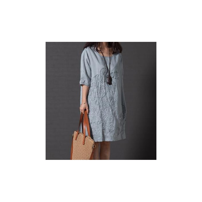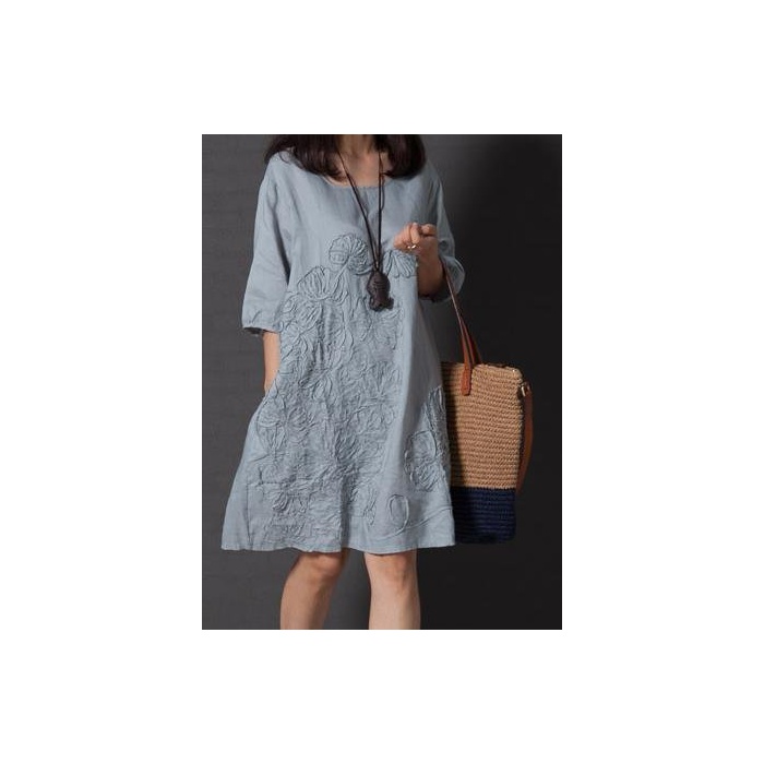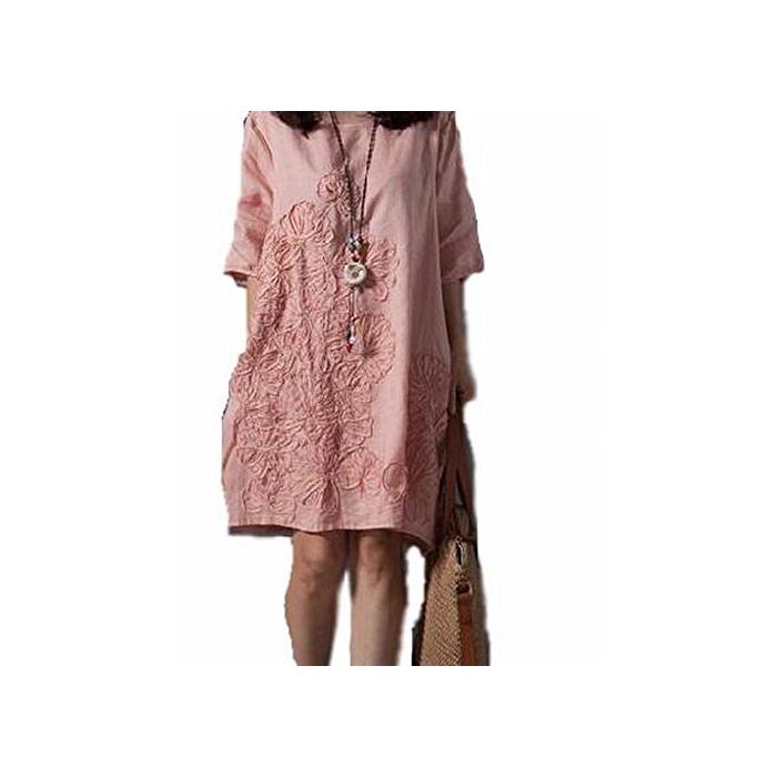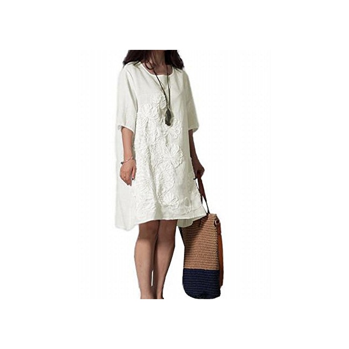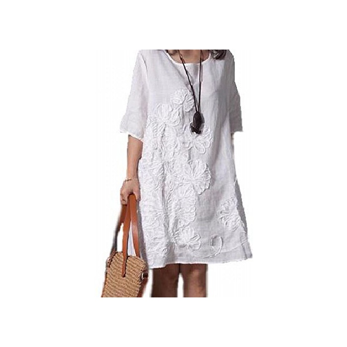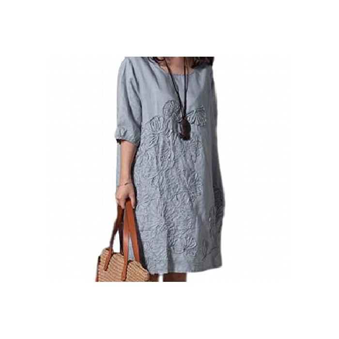 원본상품명: レディス ワンピス チュニック お花 モチフ 春 夏 ふんわり 上品 カジュアル シンプル 5分袖 刺