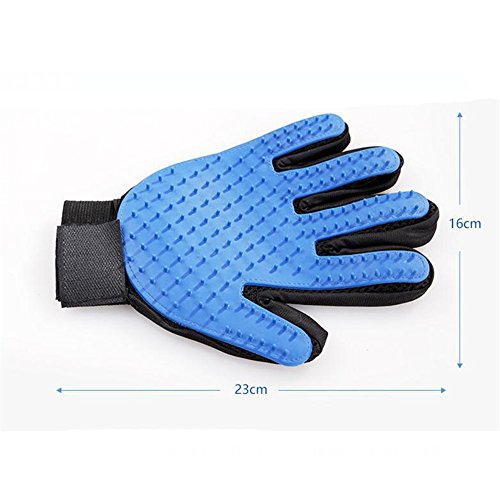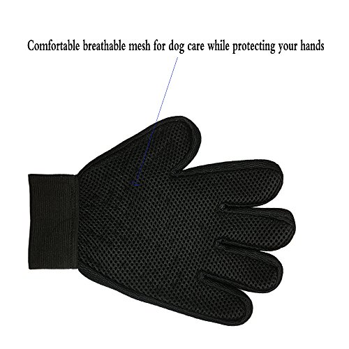 Great pet hair remover for all sizes and breeds. This pet grooming glove is manufactured at the highest material standards. We make no safety or material compromises. Comfortable breathable mesh for dog care while protecting your hands Mimics the touch of your hand for a massage; includes 180 soft silicone tips to groom with ease. The hair sticks to the glove, making it easy to peel and throw away hair after dog and cat grooming.