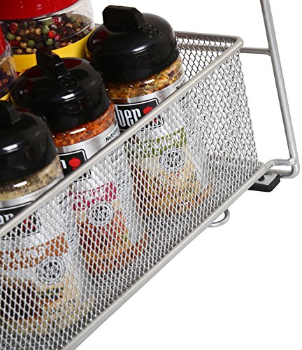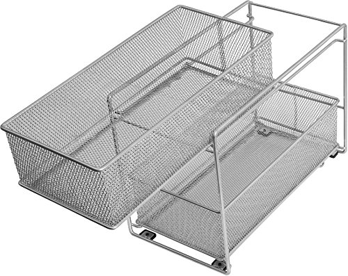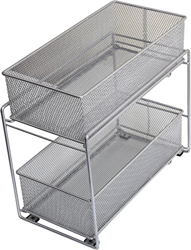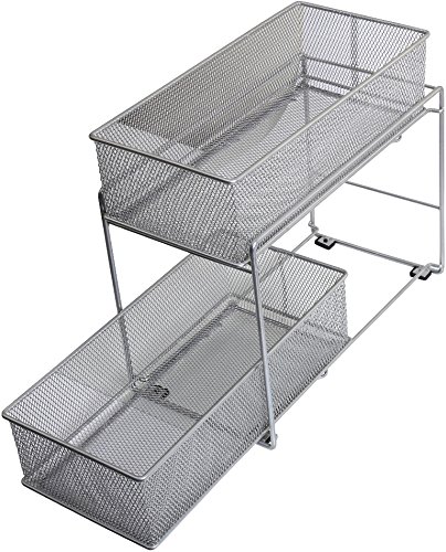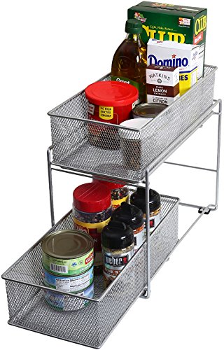 YBM Home Silver 2 Tier Mesh Sliding Spice and Sauces Basket Cabinet Organizer Drawer 2304